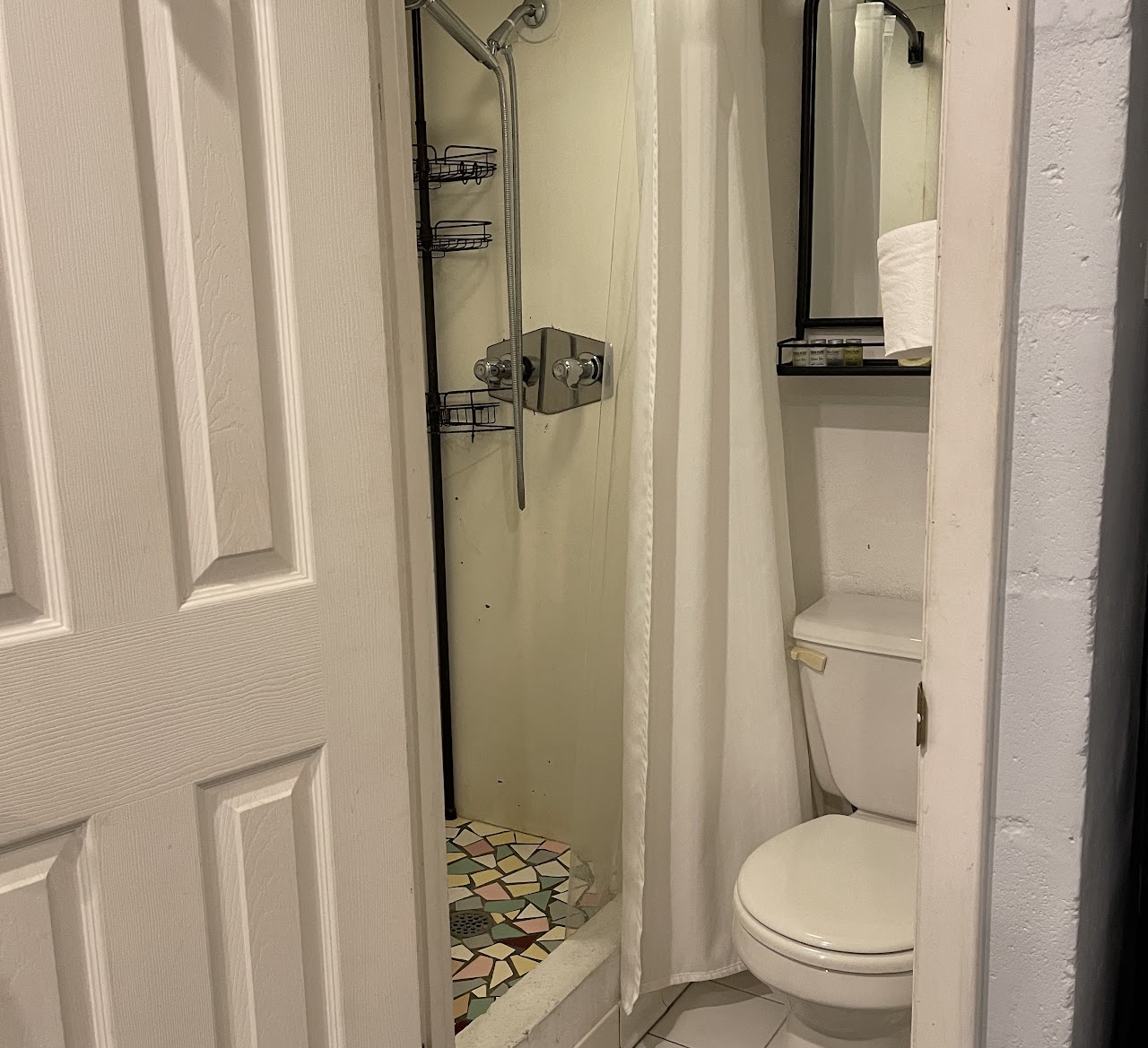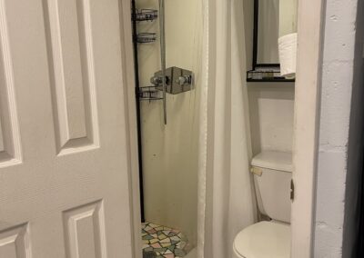 To fully enjoy a shower not running out of hot water, do not run the water at full pace or the small hot water tank will deplete too rapidly. The shower heads are luxurious AromaSense brand. Enjoy! The second bath is in the garage off the kitchen, this is an original hurricane room and has it’s own roof structure should the house collapse.