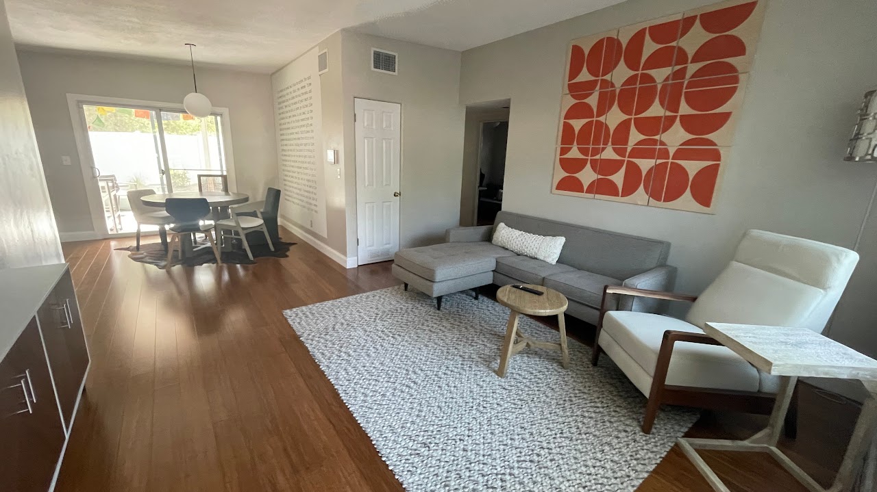 Enjoy this 3 bedroom home with living room, dining room, work desk, kitchen, & 2 bathrooms.